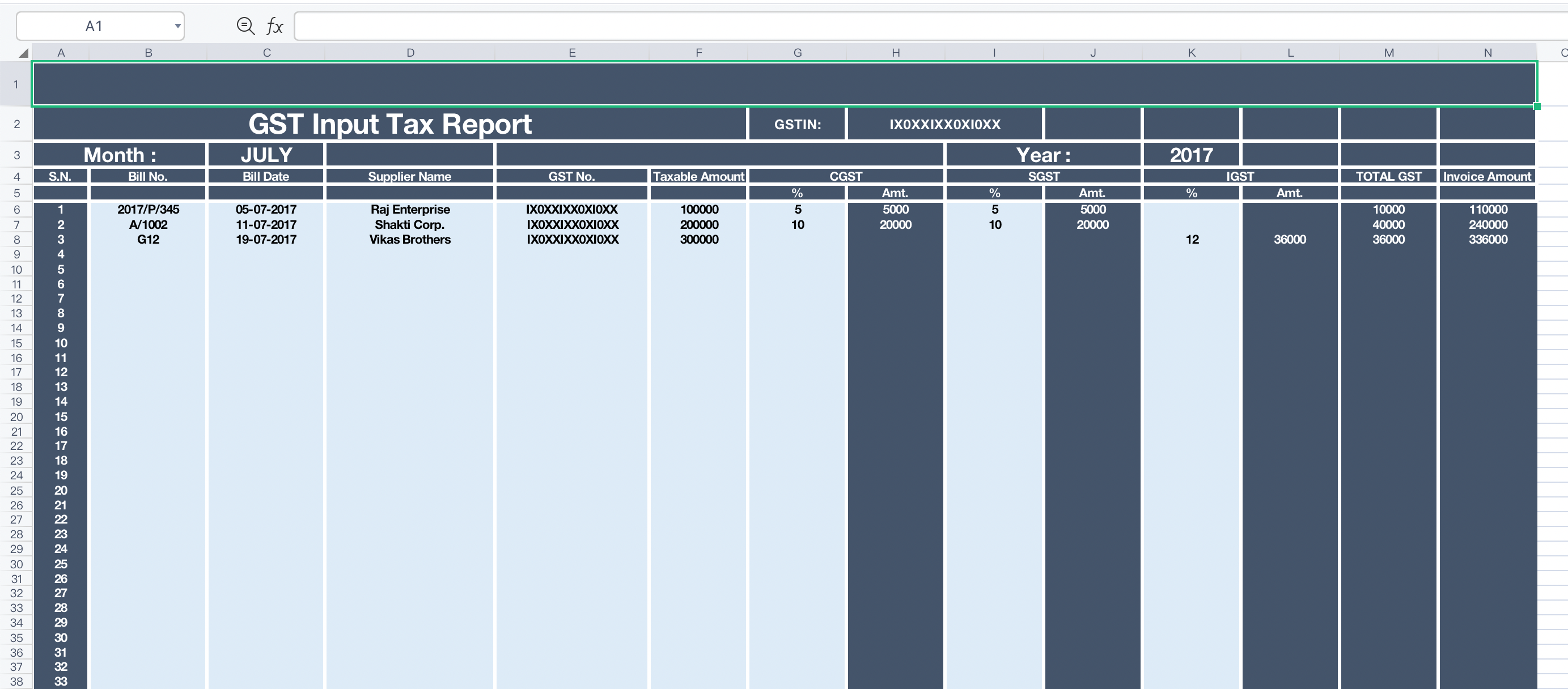 - GST-Compliant Design: Built in accordance with the provisions of the GST Law applicable in India, our template ensures compliance with the required formats and guidelines. Stay up-to-date with the latest GST regulations and effortlessly manage your ITC register.